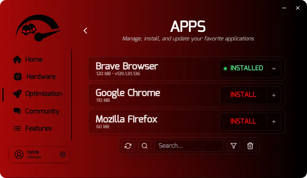 Install, update and backup Drivers in seconds with RIP Tweaks, manage all apps with one-click installs, updates and optimizations.