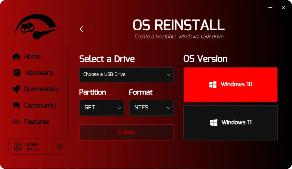 RIP Tweaks includes automated app and driver installation, benchmarking tools, system optimization, and a full OS reinstall utility. It also provides optional gaming tools such as FPS counters, crosshairs, and hardware optimizations for CPU, GPU, RAM and other aspects of a PC.